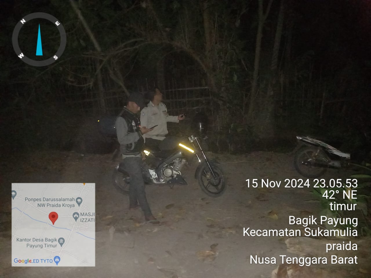 Lombok Timur – Bhabinkamtibmas Desa Korleko Selatan Polsek Labuhan Haji Bripka Ahmad Zarkasy lakukan Sambang Desa binaan dan ronda malam Untuk antisipasi Terjadinya tindak pidana terlebih jelang Pilkada serentak tahun 2024.Jum’at (16/11/24)., Pukul 23.00 Wita.