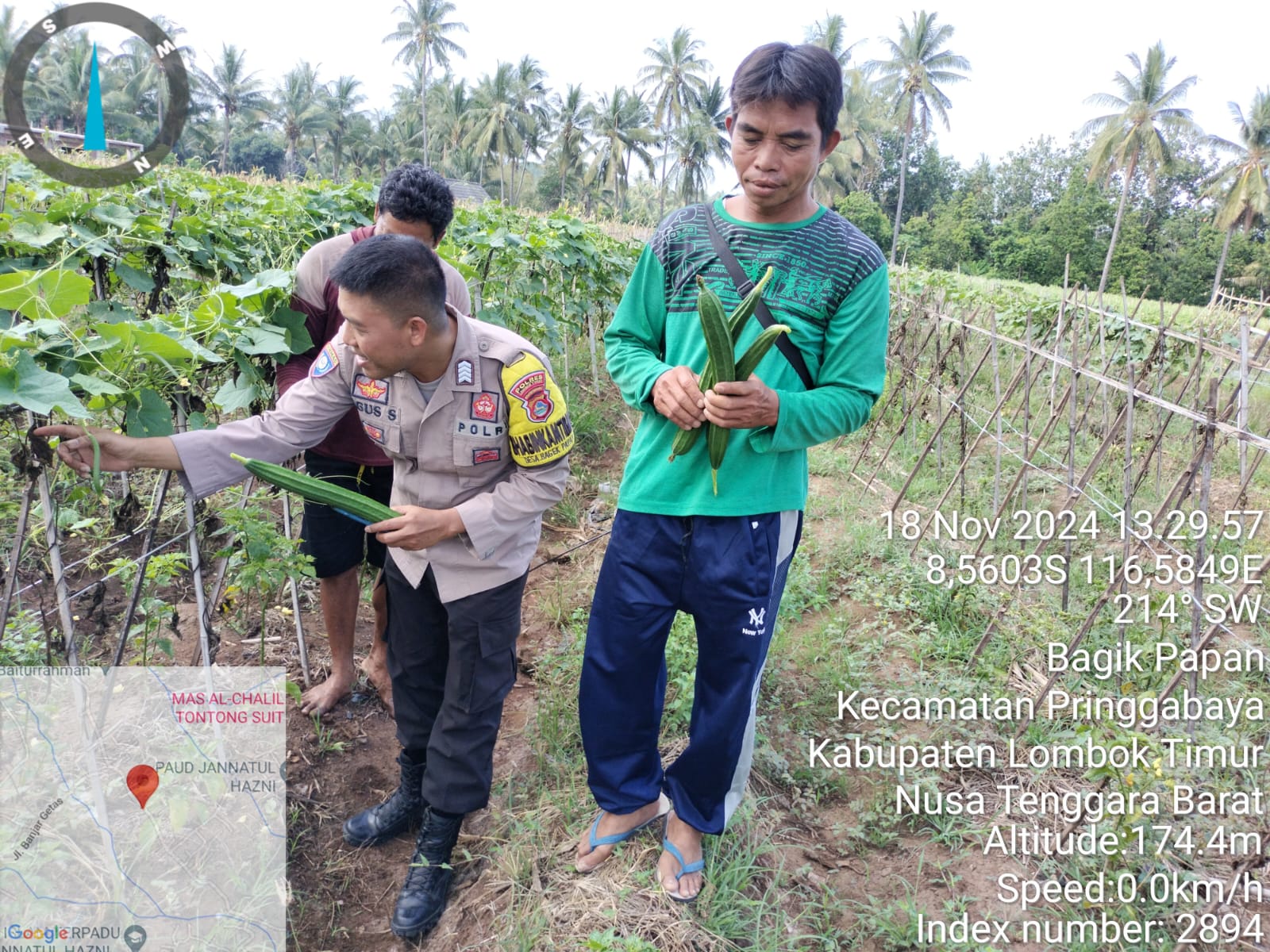 Kegiatan yang berlangsung ini dilakukan di area persawahan Dusun Bampak, di mana Bripka Agus Salim bertemu dengan masyarakat yang berprofesi sebagai petani dan tengah memetik sayur