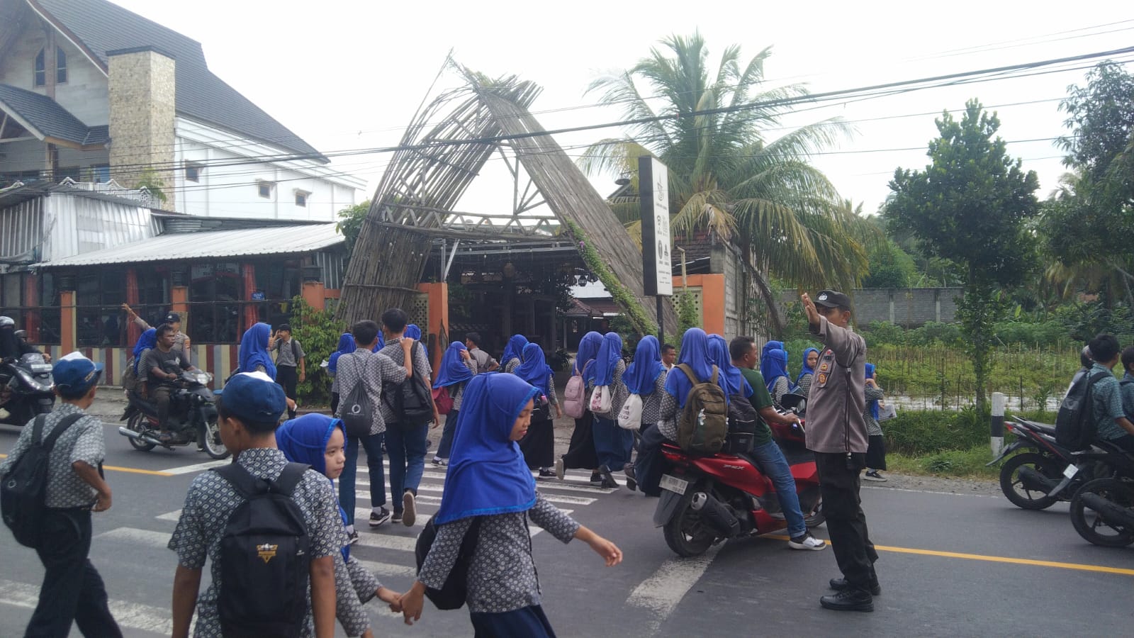 Lombok Timur – Pada Kamis, 06 Februari 2025, pukul 13.10 Wita, personel Polsek Sikur yang dipimpin oleh Aipda Andhy Wasito bersama Aipda M. Wathoni melaksanakan kegiatan rawan pagi di depan SMPN 1 Sikur, Kecamatan Sikur, Kabupaten Lombok Timur. Kegiatan ini dilakukan sebagai bagian dari upaya rutin Polsek Sikur dalam mengatur arus lalu lintas dan memastikan keselamatan, terutama bagi para siswa yang hendak pulang sekolah serta pengguna jalan seperti pengendara sepeda motor (R2 dan R4).