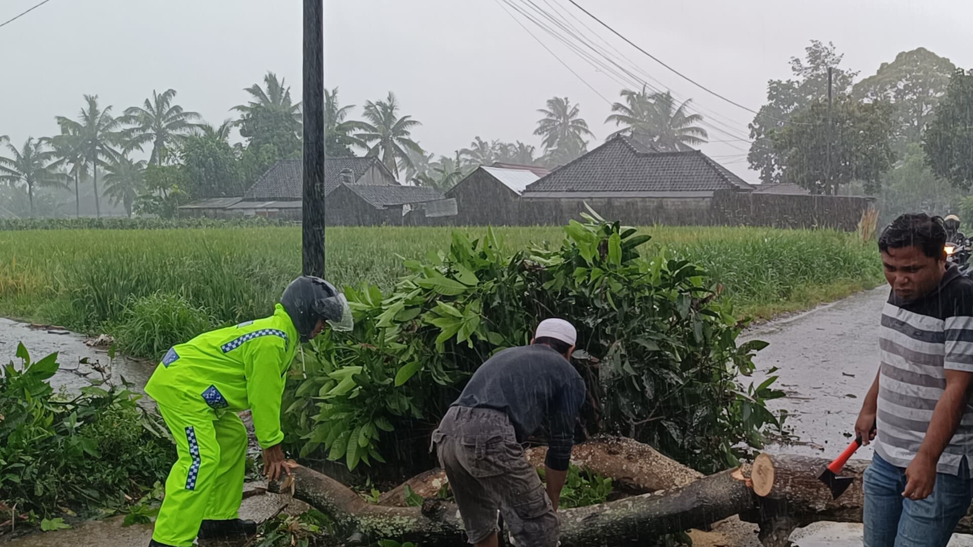 Kegiatan ini dilaksanakan sebagai respons cepat terhadap kondisi cuaca ekstrem yang menyebabkan angin kencang dan memicu tumbangnya beberapa pohon di lokasi tersebut.