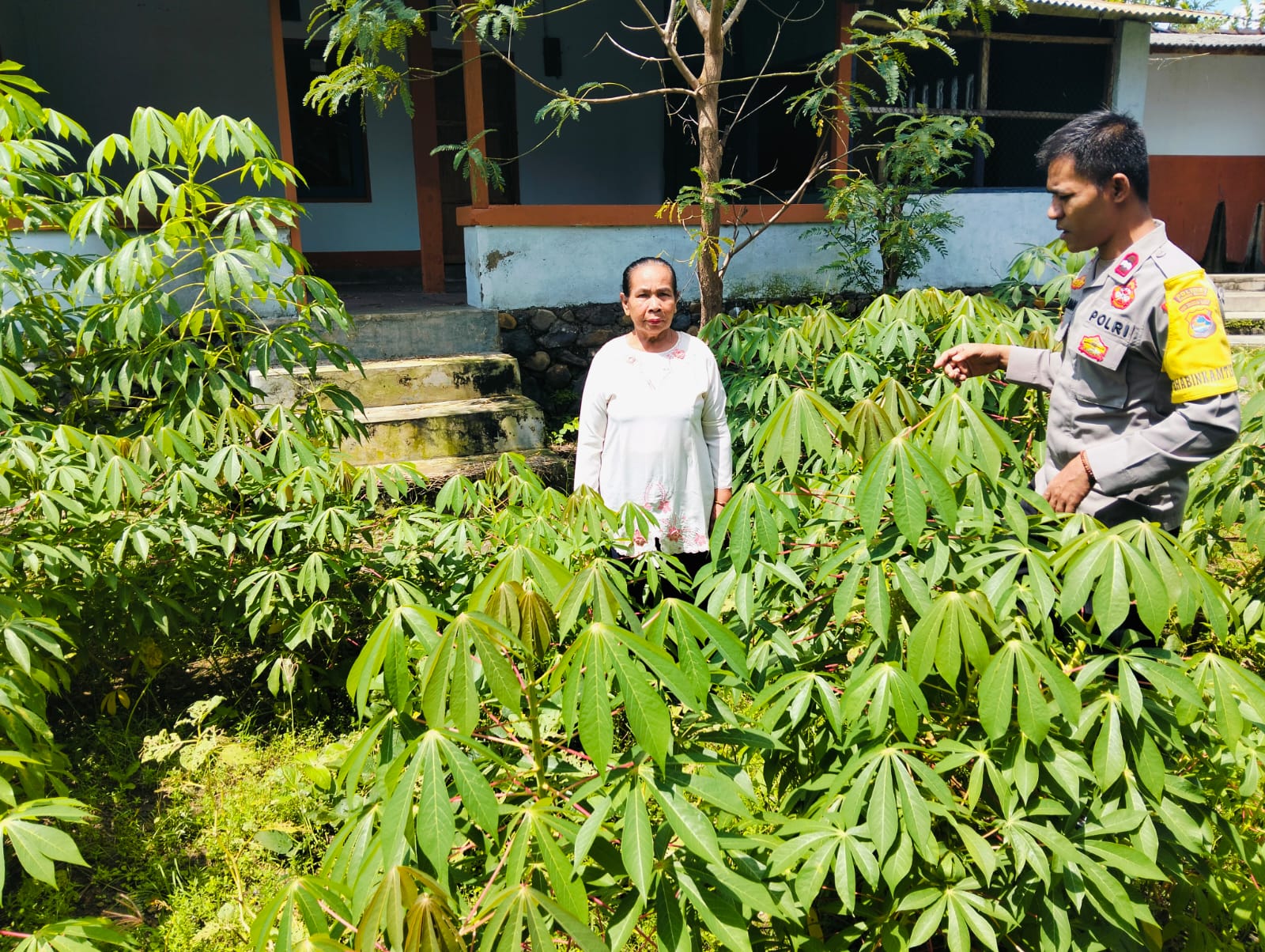 Lombok Timur – Bhabinkamtibmas Desa Peresak Polsek Sakra, Aipda Zulman Fiqriadi, melaksanakan kegiatan sambang program Pekarangan Pangan Bergizi (P2B) berupa tanaman Ubi Kayu dan Terong milik salah satu warga binaannya di Peresak Bongkot, Desa Peresak, Kecamatan Sakra.