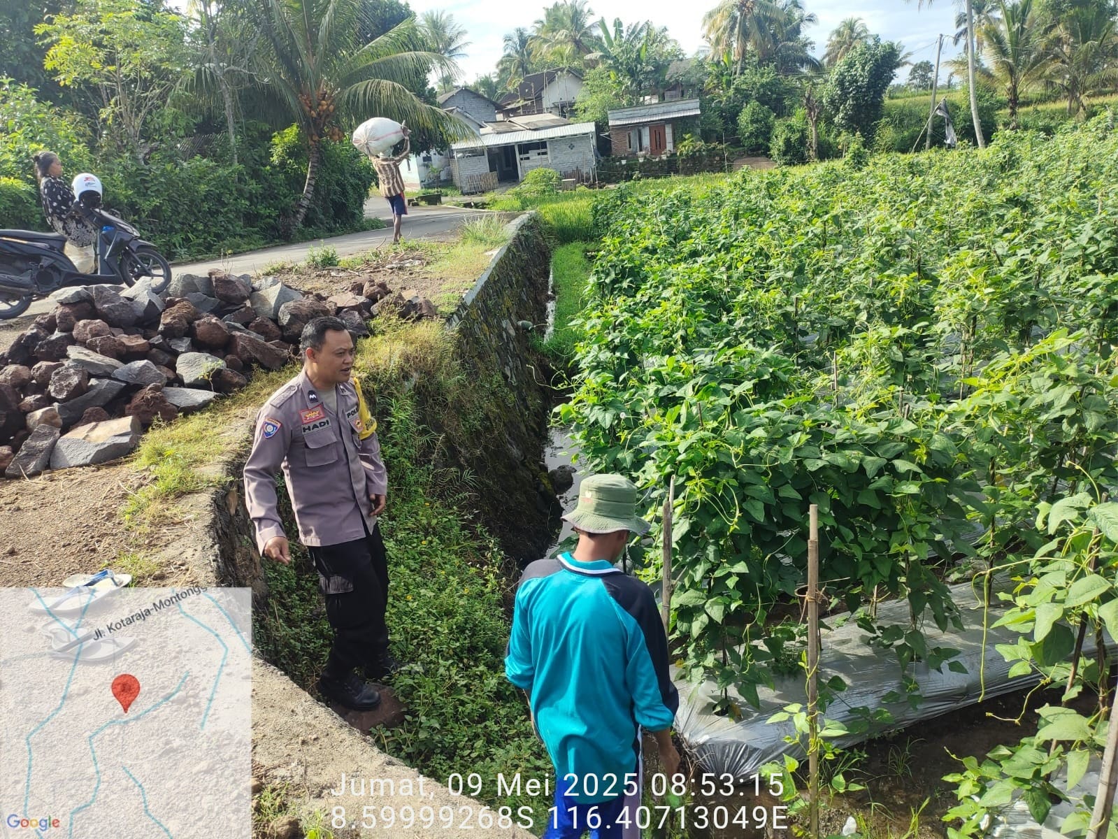 Lombok Timur – Bhabinkamtibmas Desa Pringgajurang, Polsek Montong Gading, Aipda Lalu Haerulil Hadi, bersama Kelompok Tani Tarik Pede Genem II yang diketuai oleh Fadly, melaksanakan kegiatan pengecekan dan pemeliharaan lahan Program Ketahanan Pangan Bergizi (P2B) di Dusun Dalem, Desa Pringgajurang Selatan, Kecamatan Montong Gading, Kabupaten Lombok Timur.Pada Jumat, 9 Mei 2025 pukul 09.00 Wita.