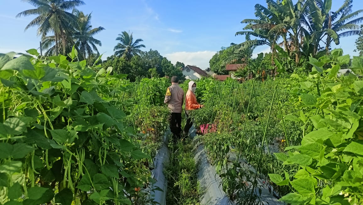 Dalam kegiatan ini, Aipda Maryadi meninjau langsung lahan pertanian milik warga yang ditanami berbagai jenis tanaman seperti tomat, cabai, dan kacang panjang. Tanaman-tanaman tersebut merupakan bagian dari program swasembada pangan yang dicanangkan pemerintah untuk meningkatkan ketersediaan pangan lokal serta mendukung perekonomian masyarakat desa.