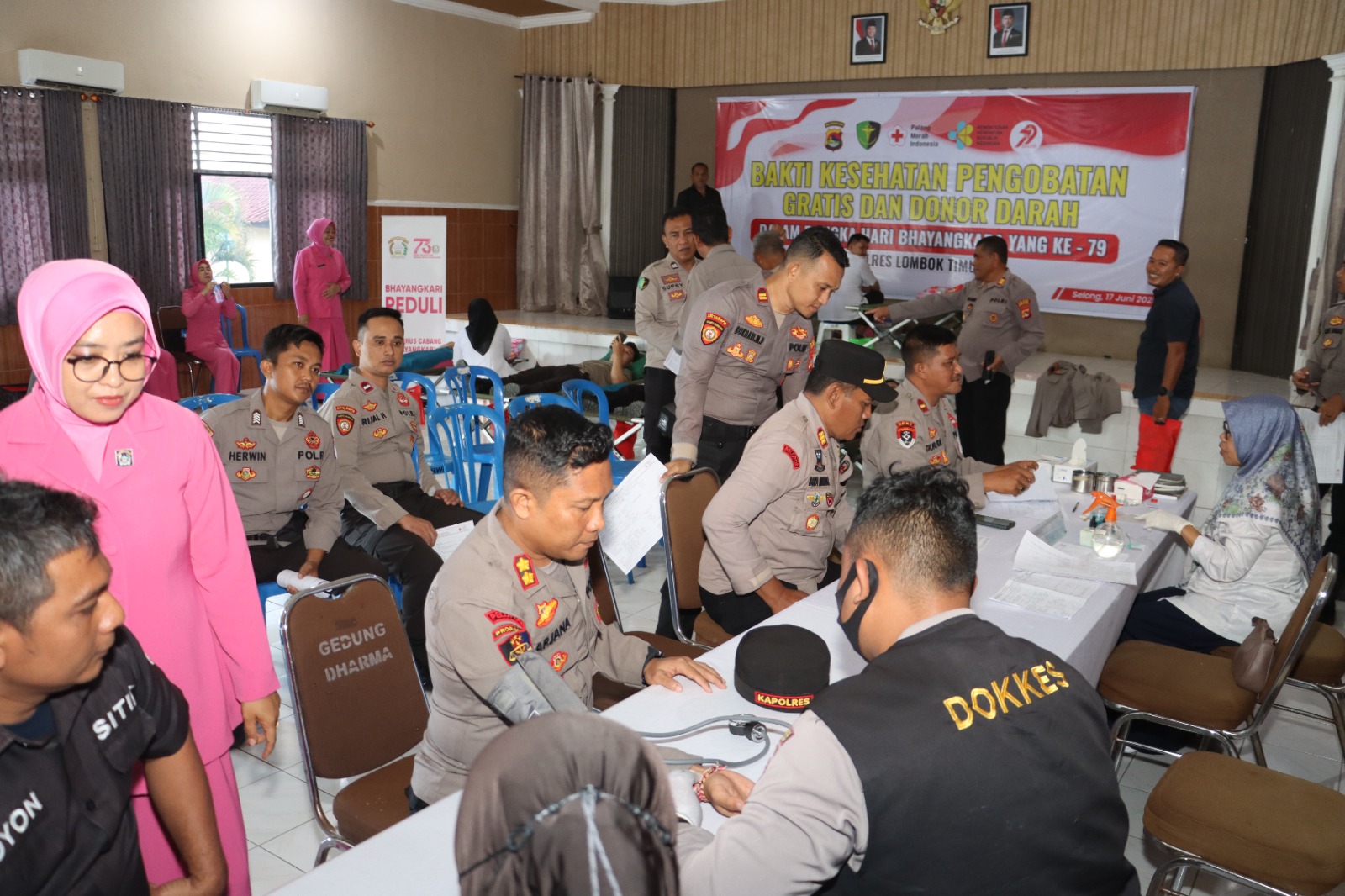Lombok Timur – Dalam rangka menyambut Hari Bhayangkara ke-79, Polres Lombok Timur menggelar kegiatan Bakti Kesehatan berupa pengobatan gratis dan donor darah yang berlangsung pada Selasa, 17 Juni 2025, pukul 08.30 Wita. Kegiatan ini dipusatkan di Gedung Dharma Polres Lotim dengan melibatkan berbagai unsur, termasuk tenaga medis dan masyarakat umum.