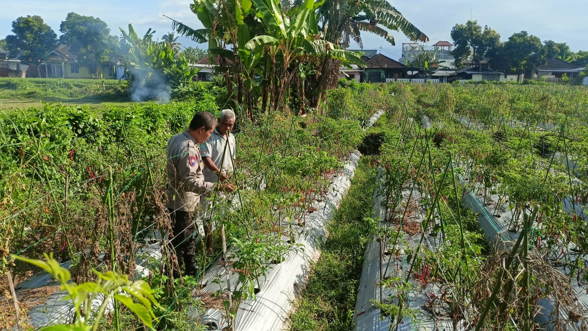 Kegiatan tersebut menyasar langsung masyarakat yang mengelola lahan pertanian dengan komoditas utama berupa tomat, cabai, dan kacang panjang. Aipda Maryadi memantau secara langsung kondisi tanaman serta memberikan arahan agar para petani tetap waspada terhadap serangan hama yang dapat mengganggu hasil panen.