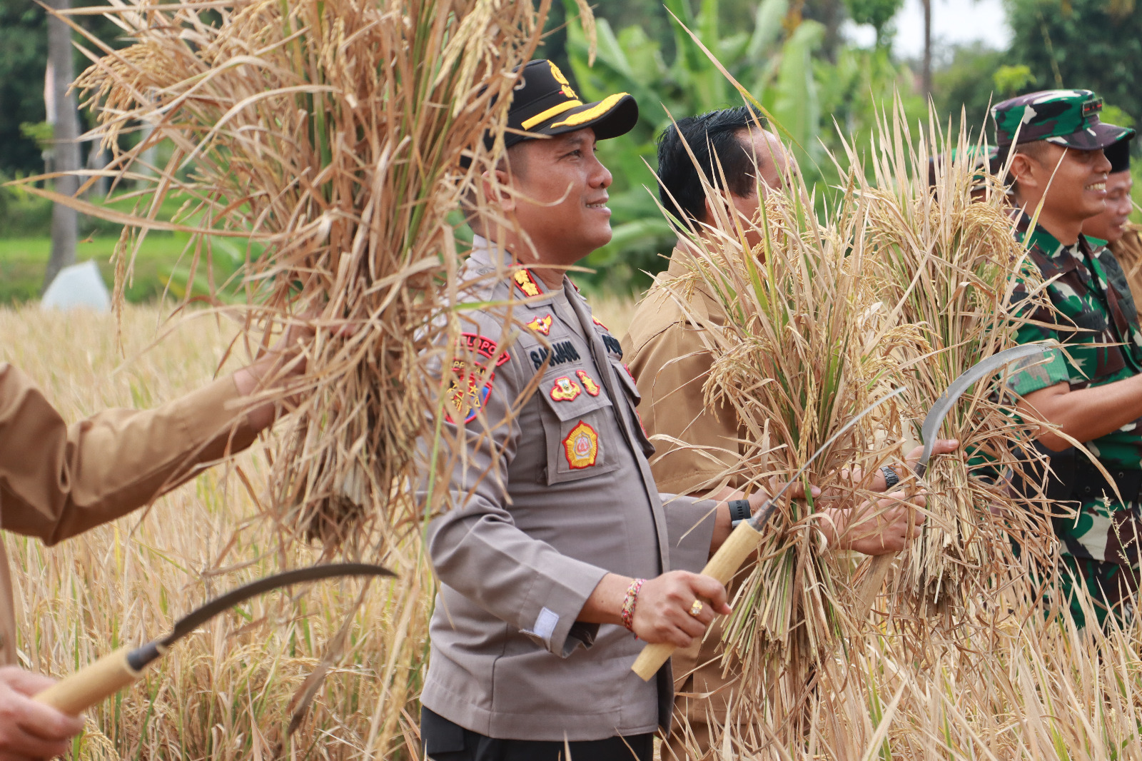 Lombok Timur – Kapolres Lotim AKBP I Komang Sarjana S.I.K., hadiri Panen Padi bertempat di Subak 2 Dusun Tanggak Desa Masbagik Timur, Kecamatan Masbagik yang merupakan Wujud dari dukungan berjalannya Program Pemerintah terkait ketahanan pangan. Selasa (29/07/25)., Pukul 10.30 Wita.