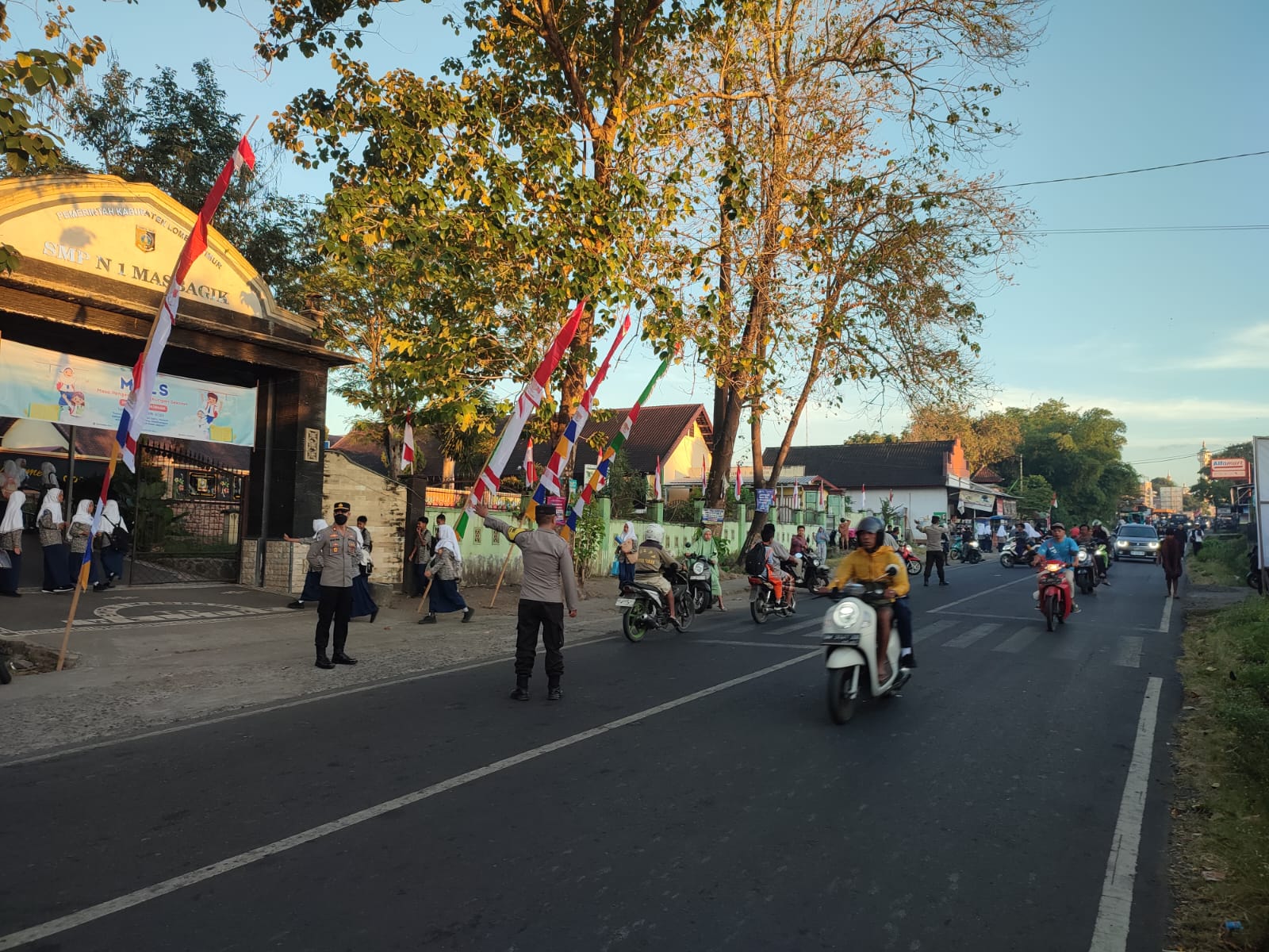 Langkah ini dilakukan sebagai upaya antisipasi terhadap potensi kemacetan dan kecelakaan lalu lintas yang sering terjadi pada jam-jam sibuk di pagi hari, khususnya di sekitar lingkungan sekolah. Petugas hadir untuk memastikan aktivitas masyarakat dapat berjalan aman dan tertib.