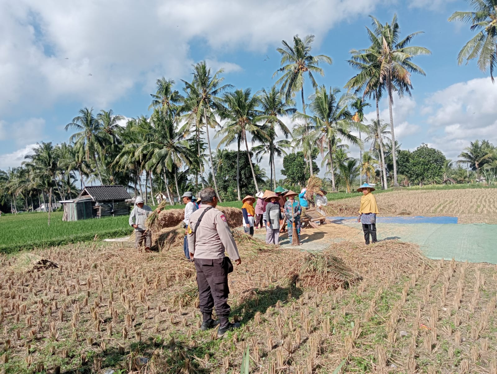 Selain bersilaturahmi dan memantau panen, Aipda Zamroni juga menyampaikan imbauan kepada masyarakat agar terus menjaga keamanan dan ketertiban lingkungan. Ia menekankan pentingnya peran aktif masyarakat dalam menciptakan situasi kamtibmas yang aman dan kondusif, sehingga aktivitas pertanian maupun kegiatan sosial lainnya dapat berjalan lancar tanpa gangguan.