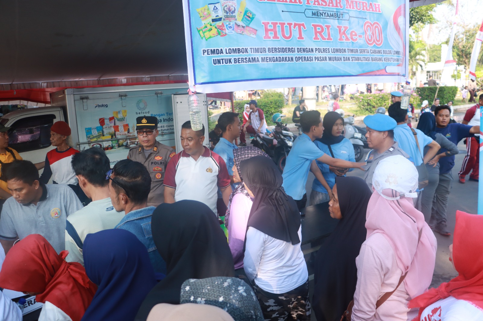 Saat diwawancarai Waka Polres Lotim Kompol Sidik Pria Mursita S.H., menerangkan bahwa; olahraga bersama dan Pasar murah tersebut dilakukan dalam rangka menyambut HUT RI ke – 80, dilakukannya Pasar murah itu sendiri untuk meningkatkan kesejahteraan Masyarakat dengan memperlancar jalur distribusi pangan secara langsung kepada Konsumen sehingga dapat menekan harga pangan.
