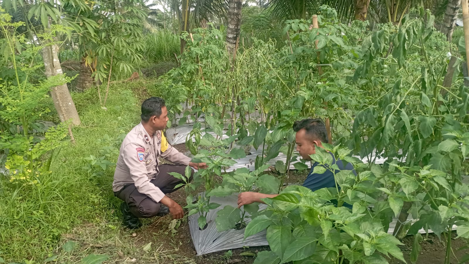 Dalam kegiatan tersebut, Bhabinkamtibmas bersama warga binaan yang tergabung dalam kelompok tani melakukan pengecekan langsung kondisi tanaman pangan. Tanaman yang menjadi fokus dalam giat ketahanan pangan kali ini adalah cabai dan tomat yang ditanam warga sebagai bagian dari upaya mendukung ketersediaan pangan bergizi di wilayah Desa Kesik.