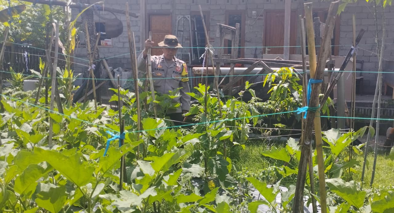 Dalam kegiatan tersebut, Aipda Kasim melakukan pemantauan langsung terhadap berbagai jenis tanaman yang dikelola masyarakat di lahan pekarangan. Adapun tanaman yang dicek antara lain terong, cabai, ubi, kunyit, jahe, dan labu. Tanaman-tanaman ini diharapkan dapat memberikan manfaat gizi bagi keluarga serta menjadi penopang ekonomi rumah tangga.