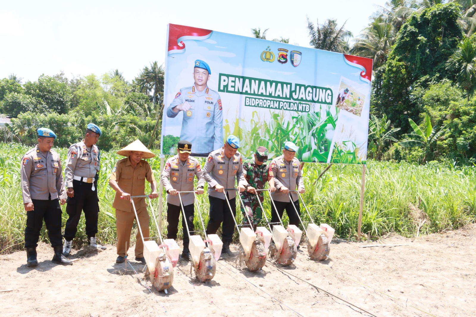 Lombok Timur – Dalam upaya mendukung program pemerintah terkait ketahanan pangan nasional, Kabid Propam Polda NTB Kombes Pol Wildan Alberd, S.I.K., M.K.P., memimpin kegiatan penanaman jagung di Lingkungan Kebon Erat, Kelurahan Kelayu Utara, Kecamatan Selong, Kabupaten Lombok Timur, pada Selasa (7/10/2025) pukul 11.30 Wita. Kegiatan ini juga dirangkaikan dengan pemberian bantuan sosial kepada masyarakat sekitar.