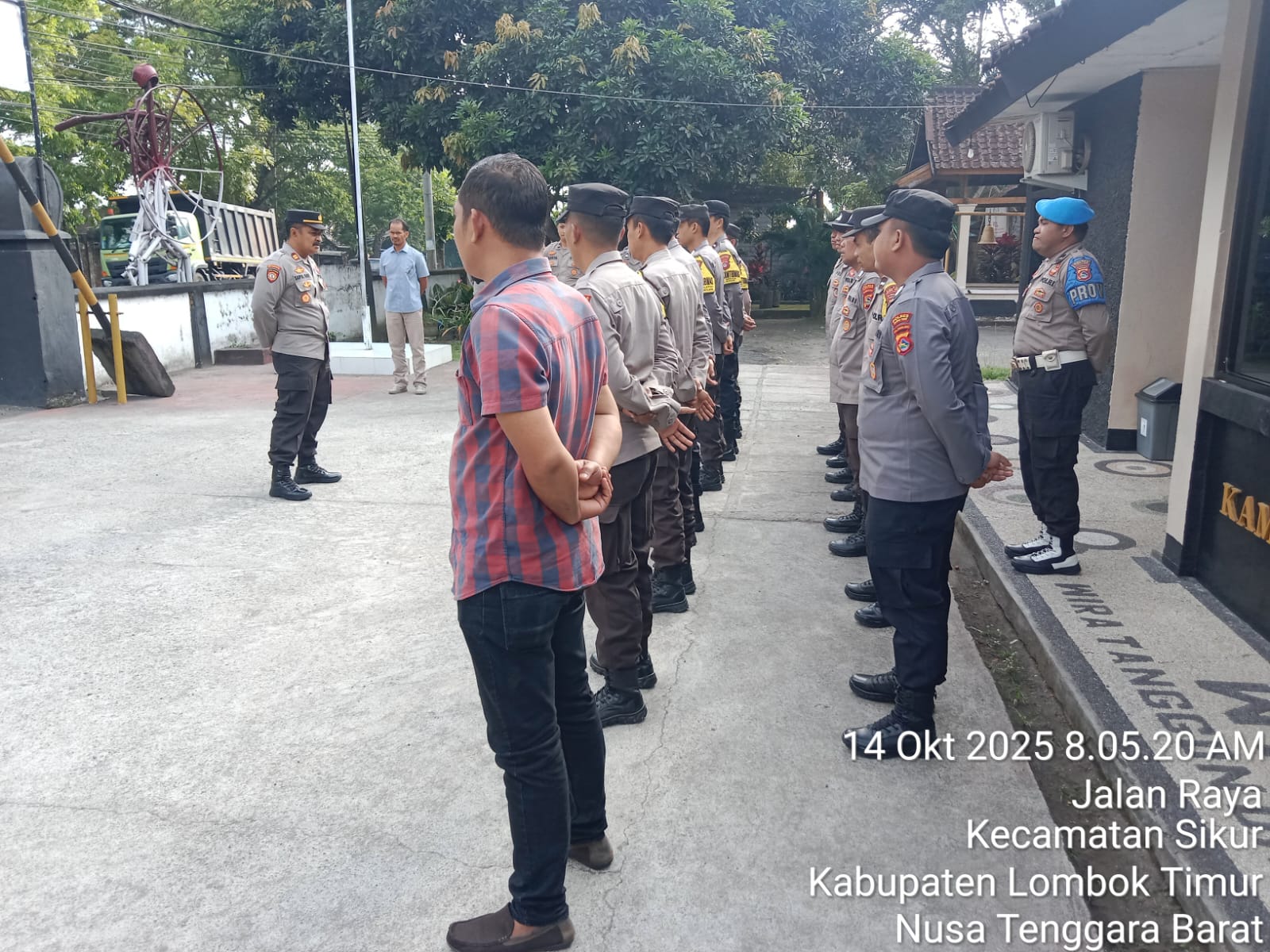 Lombok Timur – Kapolsek Sikur Polres Lombok Timur, IPTU Saeful Hadi, S.Sos, memimpin apel khusus yang dilaksanakan di Lapangan Apel Polsek Sikur pada hari Selasa, 14 Oktober 2025. Apel ini diikuti oleh 14 personel Polsek Sikur dan menjadi momen penting untuk menyampaikan arahan sekaligus penekanan kepada seluruh anggota terkait optimalisasi pengawasan terhadap Pegawai Negeri pada Polri (PNPP).