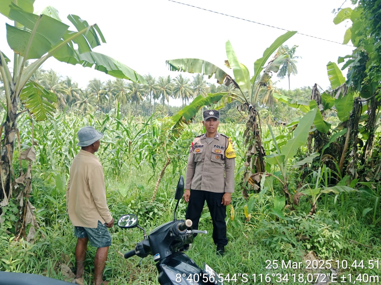 Lombok Timur – Bhabinkamtibmas Desa Banjarsari, Bripka Zulheldi, melaksanakan kegiatan pengecekan terhadap Lahan Ketahanan Pangan Bergizi (P2B) di Dusun Gubuk Masjid, Desa Banjarsari. Selasa (26/03/25)., pukul 10.30 Wita.