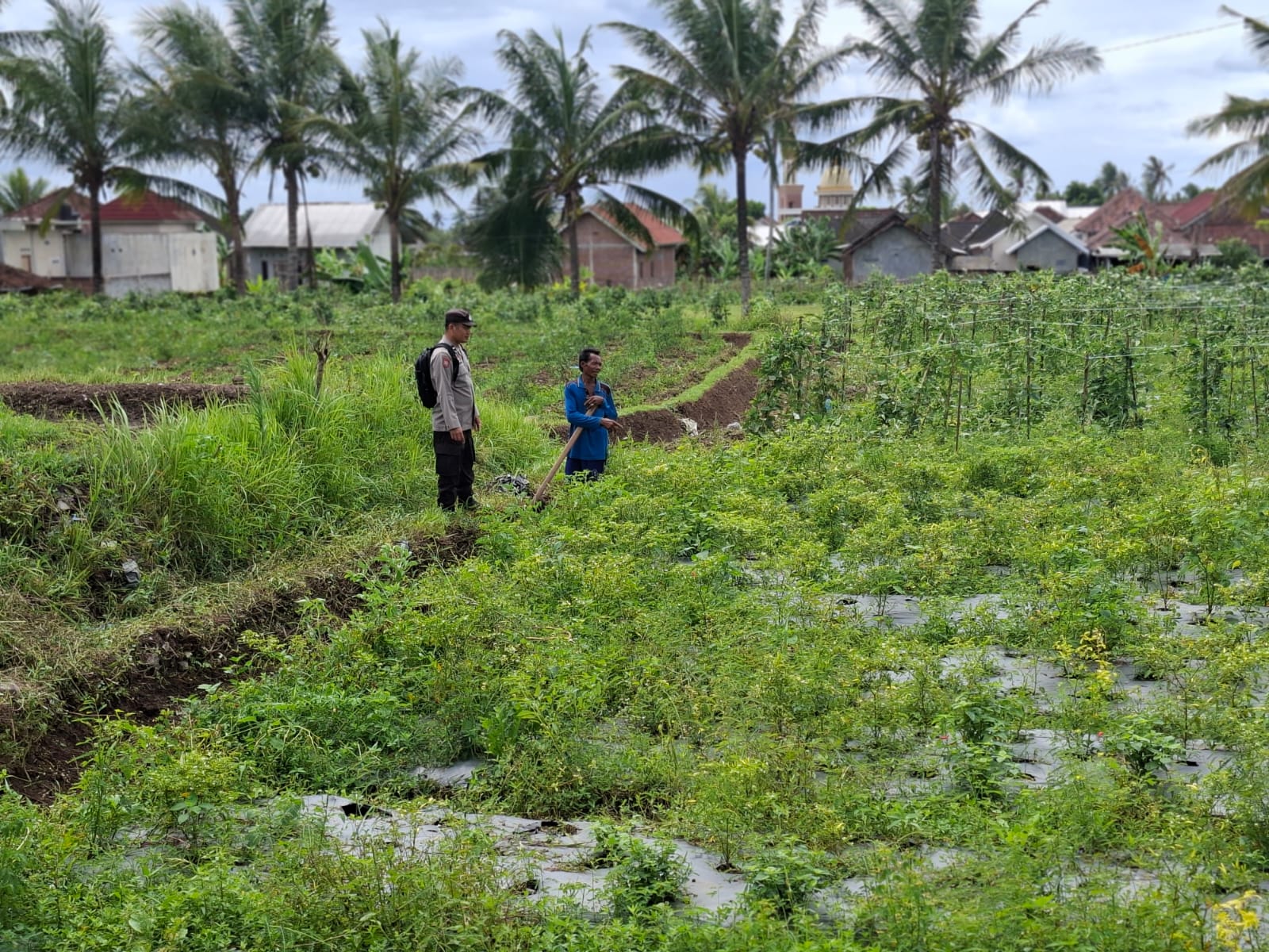 Selain itu, Aipda Muhtar juga melaksanakan monitoring ketahanan pangan sebagai bentuk dukungan terhadap program ketahanan pangan pemerintah pusat. Monitoring ini dilakukan untuk melihat secara langsung kondisi lahan pertanian serta memastikan pemanfaatannya berjalan optimal dalam rangka mendukung swasembada pangan dan kedaulatan pangan nasional.