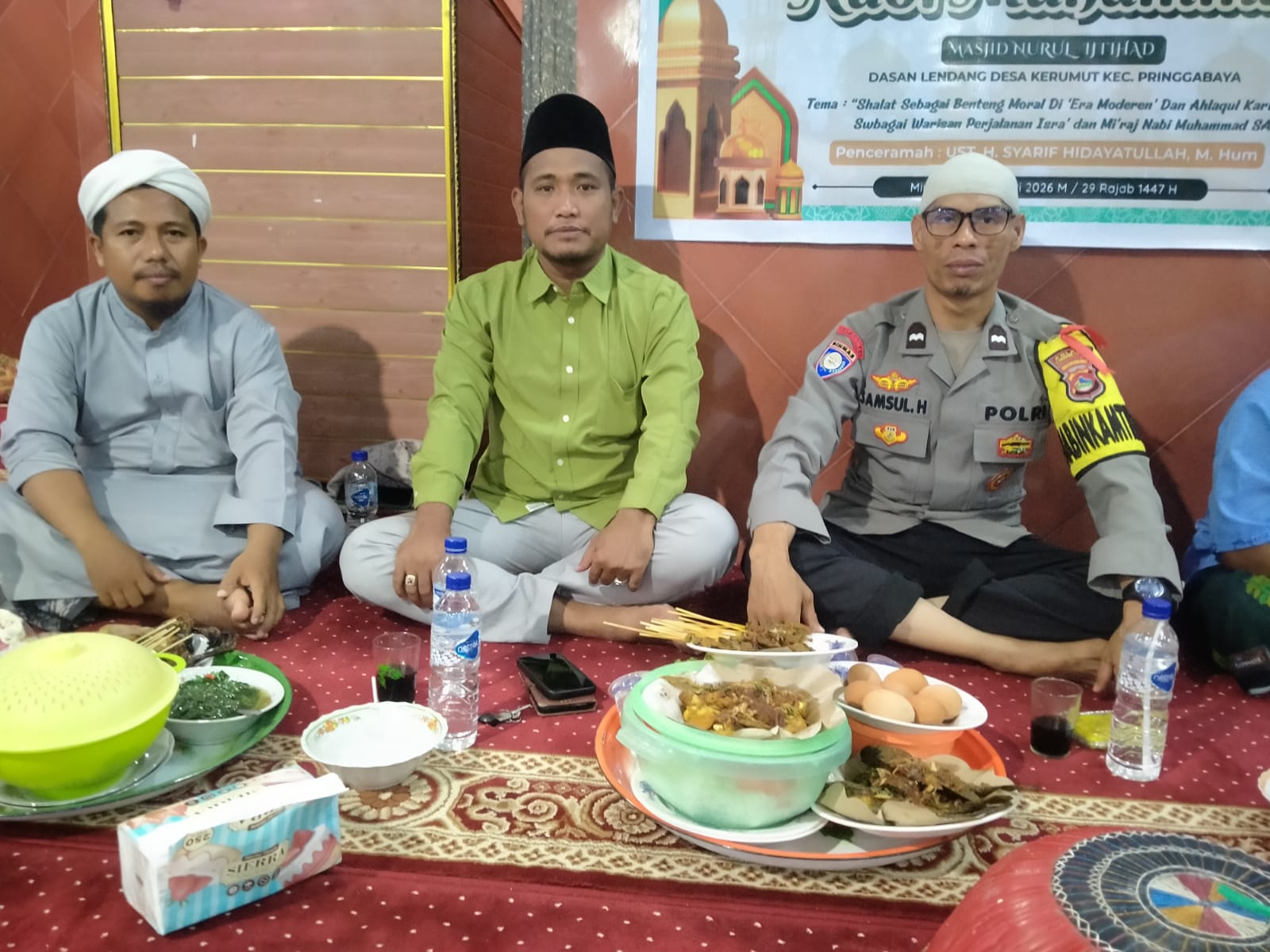 Lombok Timur – Bhabinkamtibmas Desa Kerumut Polsek Pringgabaya, AIPDA Samsul Hakim, menghadiri kegiatan peringatan Hari Besar Islam Isra’ Mi’raj Nabi Muhammad SAW yang digelar di Masjid Nurul Ijtihad, Desa Kerumut, Kecamatan Pringgabaya. Kegiatan yang berlangsung mulai pukul 20.30 Wita hingga selesai tersebut diikuti oleh panitia PHBI, tokoh agama, tokoh masyarakat, serta ratusan warga setempat. Ahad (18/1/2026) malam