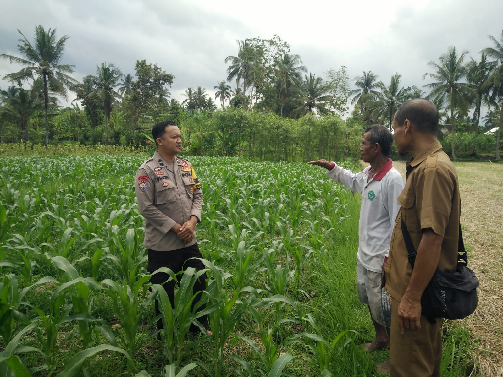 Dalam pelaksanaannya, AIPTU Iwan Wahyudin, SH., menyambangi lahan pertanian warga yang berada di Dusun Gubuk Motong Timur dan Dusun Tanak Malit Utara, Desa Masbagik Selatan. Ia juga memberikan motivasi kepada warga agar terus merawat tanaman dengan baik sehingga hasil panen dapat maksimal dan bermanfaat bagi kebutuhan sehari-hari.
