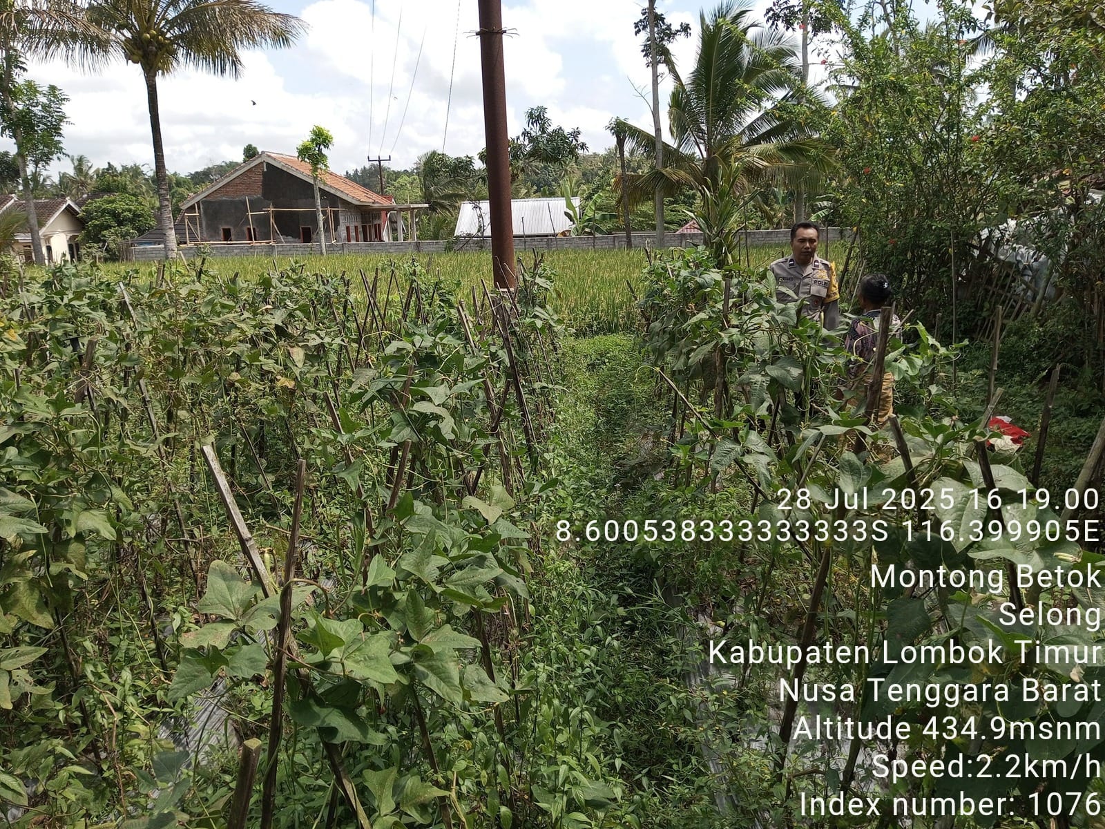 Lombok Timur– Bhabinkamtibmas Desa Montong Betok, Polsek Montong Gading, Aipda Lalu Khurdianto melaksanakan kegiatan pengecekan lahan dalam rangka mendukung Program Ketahanan Pangan Bergizi (P2B). Kegiatan ini dilaksanakan mulai pukul 16.00 Wita hingga selesai, bertempat di Dusun Gubuk Kantor, Desa Montong Betok, Kecamatan Montong Gading. Senin (28/07/2025)
