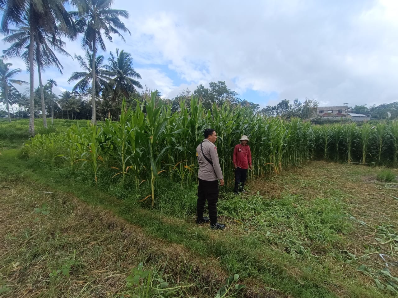 Dalam pantauan di lokasi, keduanya terlihat menyusuri area perkebunan dan memeriksa kondisi tanaman jagung yang sedang memasuki fase pertumbuhan. Pengecekan dilakukan untuk memastikan tanaman tumbuh baik dan bebas dari serangan hama. Kehadiran petugas kepolisian di tengah-tengah petani ini juga menjadi bentuk dukungan moril agar petani tetap semangat mengelola lahan pertanian.