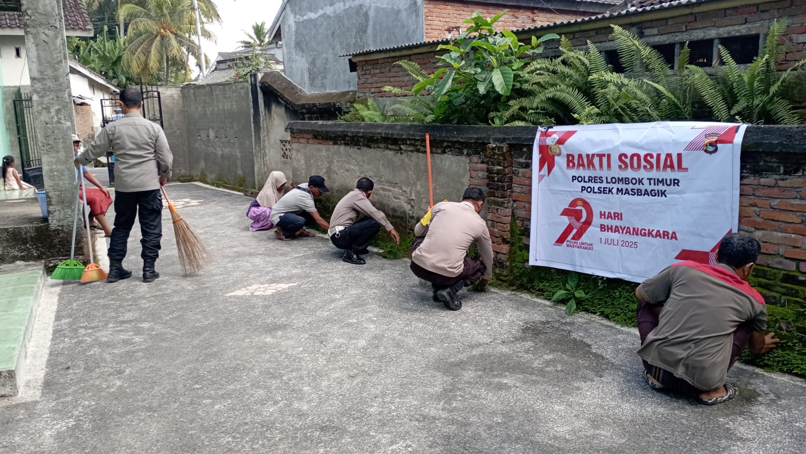 Dipimpin langsung oleh Kapolsek Masbagik, AKP I Wayan Sukarsana, para personel bersama warga setempat membersihkan area dalam masjid, halaman, hingga tempat wudhu. Polsek Masbagik juga memberikan baksos kepada masyarakat yang kurang mampu di sekitar masjid.
