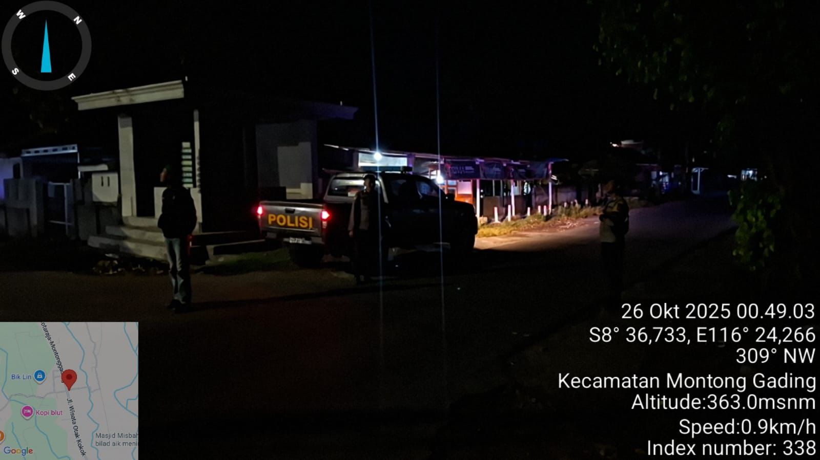 Patroli tersebut melibatkan tiga orang anggota jaga bersama Kapolsek Montong Gading. Dengan menyalakan lampu rotator biru khas Blue Light Patrol, rombongan petugas berkeliling menyusuri sejumlah ruas jalan utama dan area pemukiman warga yang dianggap rawan terjadinya tindak kriminalitas. Kegiatan ini merupakan upaya preventif Polri dalam menjaga keamanan serta menciptakan rasa aman bagi masyarakat pada malam hari.