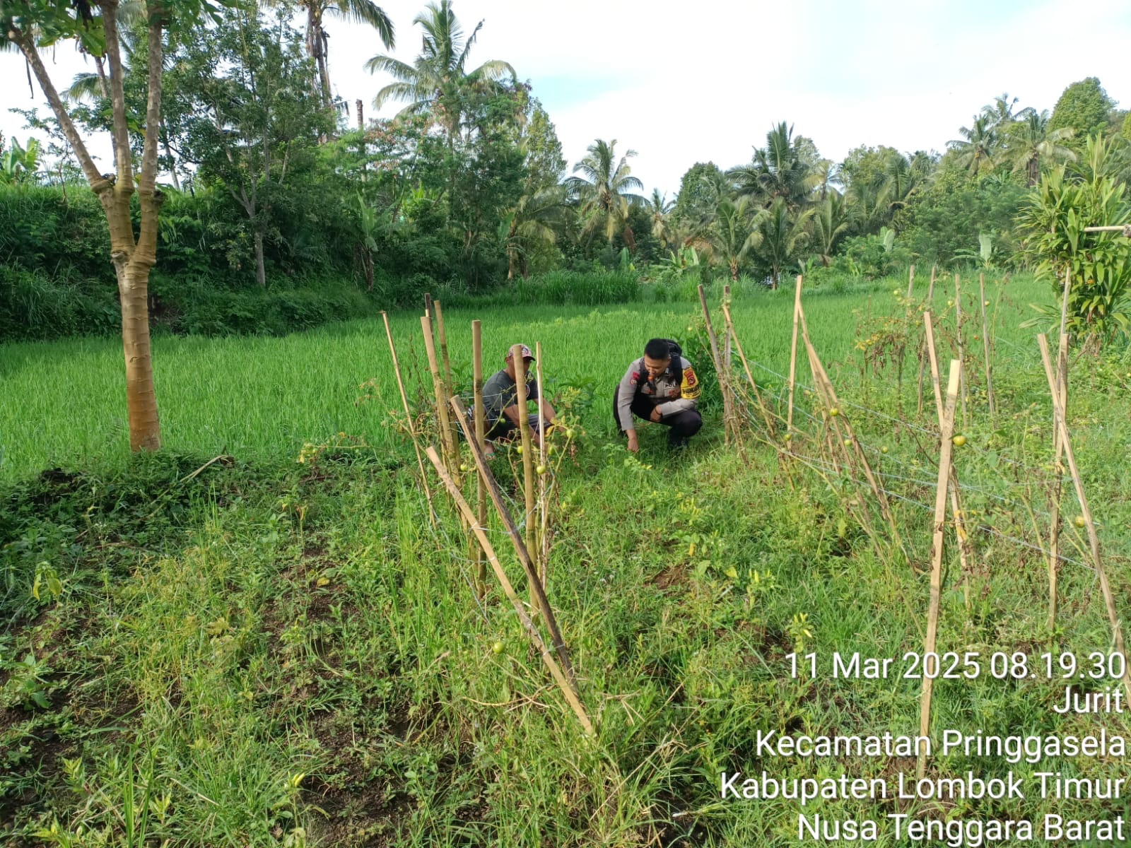 Lombok Timur, – Dalam rangka menjaga keberlanjutan Program Ketahanan Pangan Bergizi (P2B), Bhabinkamtibmas Desa Jurit Baru, Brigpol Baruna Yuda Prawira, bersama kelompok tani yang dipimpin oleh Suhamdi, melakukan pengecekan dan pemeliharaan lahan pertanian di Dusun Banok, Desa Jurit Baru, Kecamatan Pringgasela, Kabupaten Lombok Timur. Kegiatan ini dimulai pukul 08.30 WITA dan berfokus pada pemantauan serta perawatan tanaman cabai dan tomat. Selasa (11/03/2025)