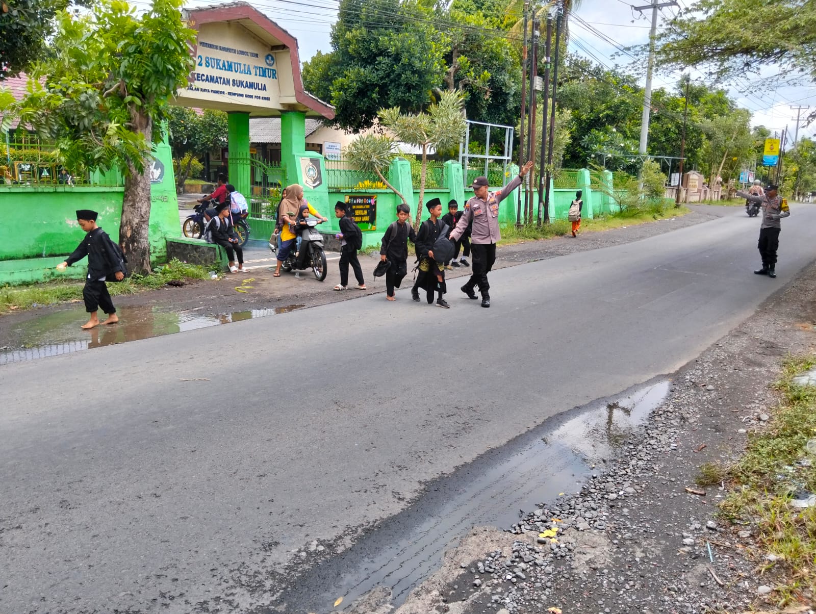 Selain membantu siswa menyeberang, personel juga memberikan imbauan kepada para pengendara roda dua dan roda empat agar selalu berhati-hati saat melintas di depan sekolah. Imbauan tersebut disampaikan guna meningkatkan kesadaran pengguna jalan untuk lebih memperhatikan keselamatan anak-anak yang beraktivitas di sekitar area sekolah.