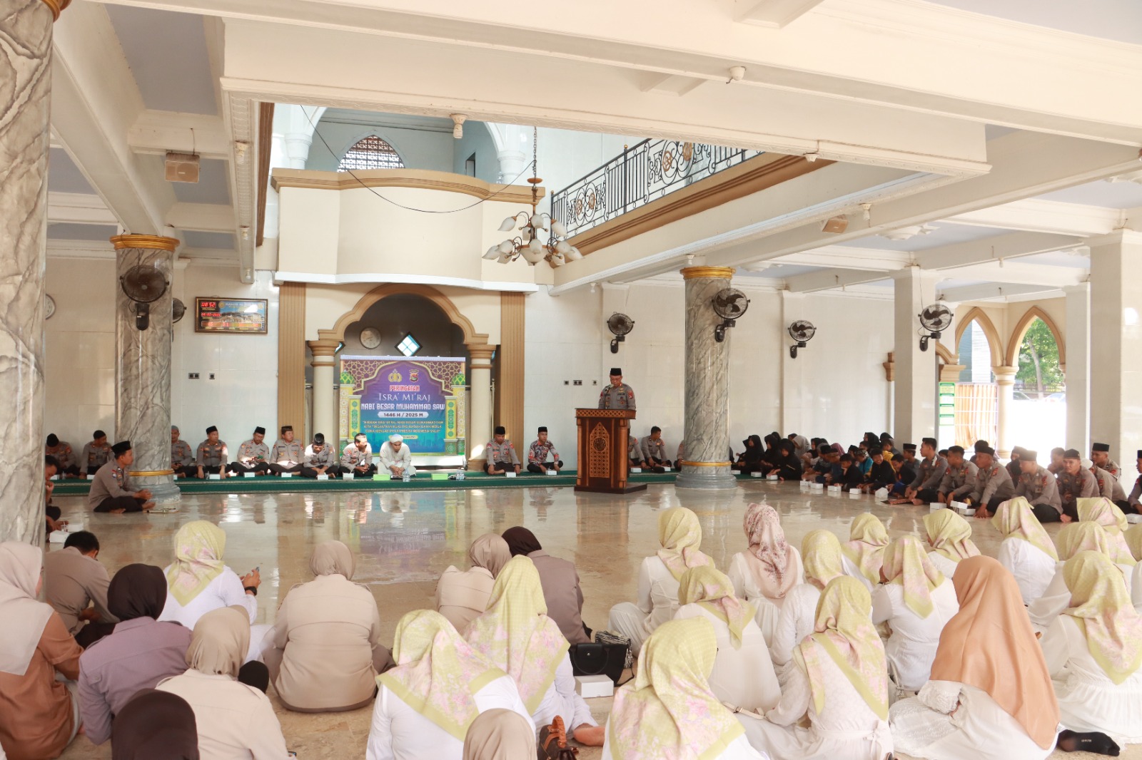 Peringatan Isra Mi’raj Nabi Muhammad SAW di Masjid Al – Islah mengambil tema ‘Melalui Hikmah Isra Mi’raj Kita Tingkatkan Kualitas Ibadah dan Kinerja Guna Menjadi Polri Presisi Indonesia Maju’.