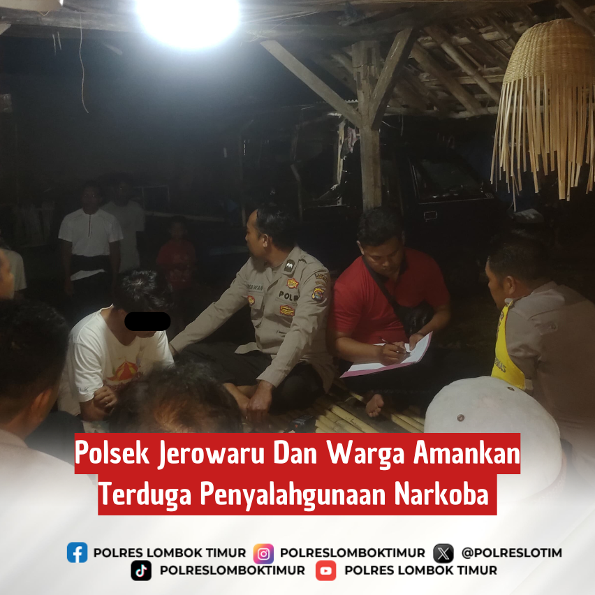 Kapolsek Jerowaru IPTU Yudha Aditya W, SH saat dikonfirmasi membenarkan adanya pengamanan terhadap seorang warga yang diduga menyalahgunakan narkotika.