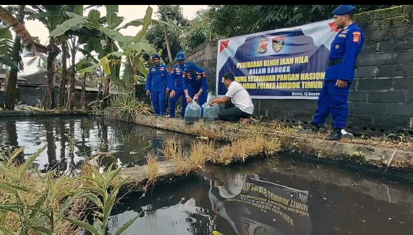 Sat Pol Airud Polres Lombok Timur, Polda NTB, melaksanakan program Asta Cita Presiden Republik Indonesia dalam rangka ketahanan pangan dengan kegiatan penebaran bibit ikan nila. Kegiatan ini berlangsung di Dusun Pungkang Daye, Desa Aikmel Barat, Kecamatan Aikmel, Kabupaten Lombok Timur, dimulai pukul 09.00 WITA. Program ini bertujuan untuk mendukung penguatan ketahanan pangan masyarakat melalui sektor perikanan. Kamis (12/12/2024)