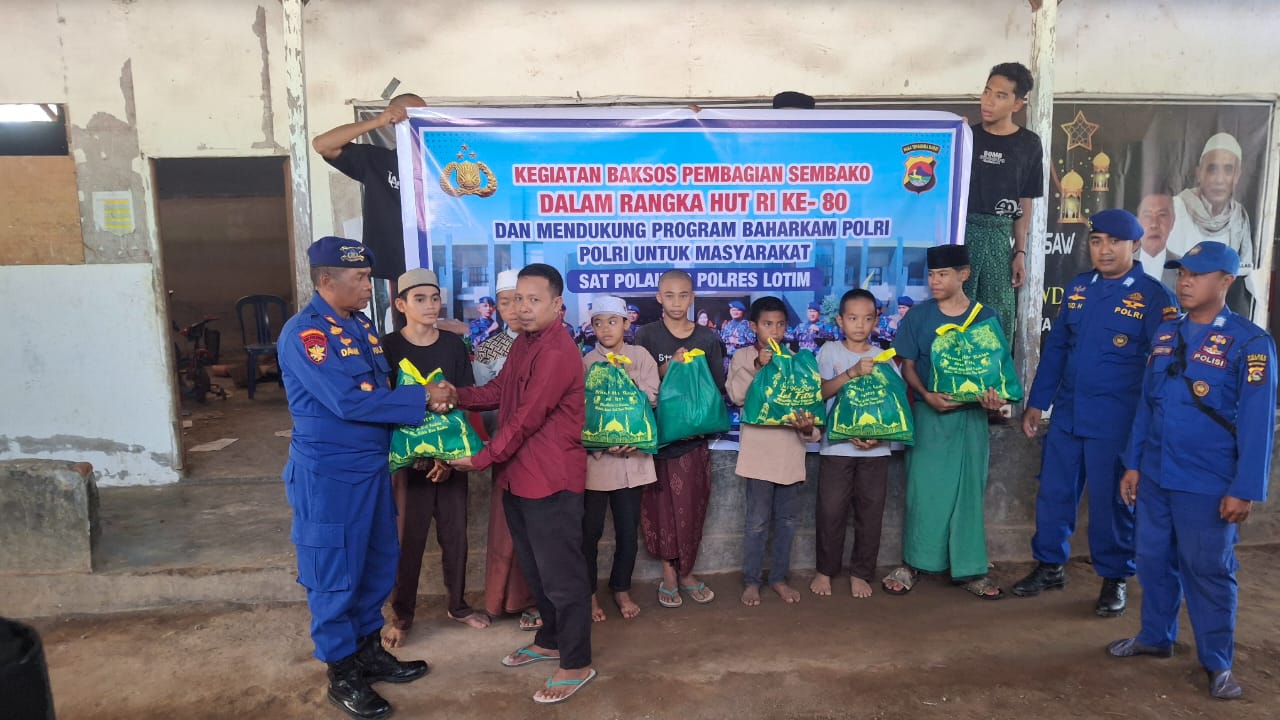 Lombok Timur, Kompas.com – Satuan Polisi Perairan dan Udara (Sat Polairud) Polres Lombok Timur melaksanakan kegiatan bakti sosial dengan membagikan bantuan sosial (bansos) kepada masyarakat pesisir dan pondok pesantren di Kecamatan Pringgabaya, Kamis (21/8/2025).
