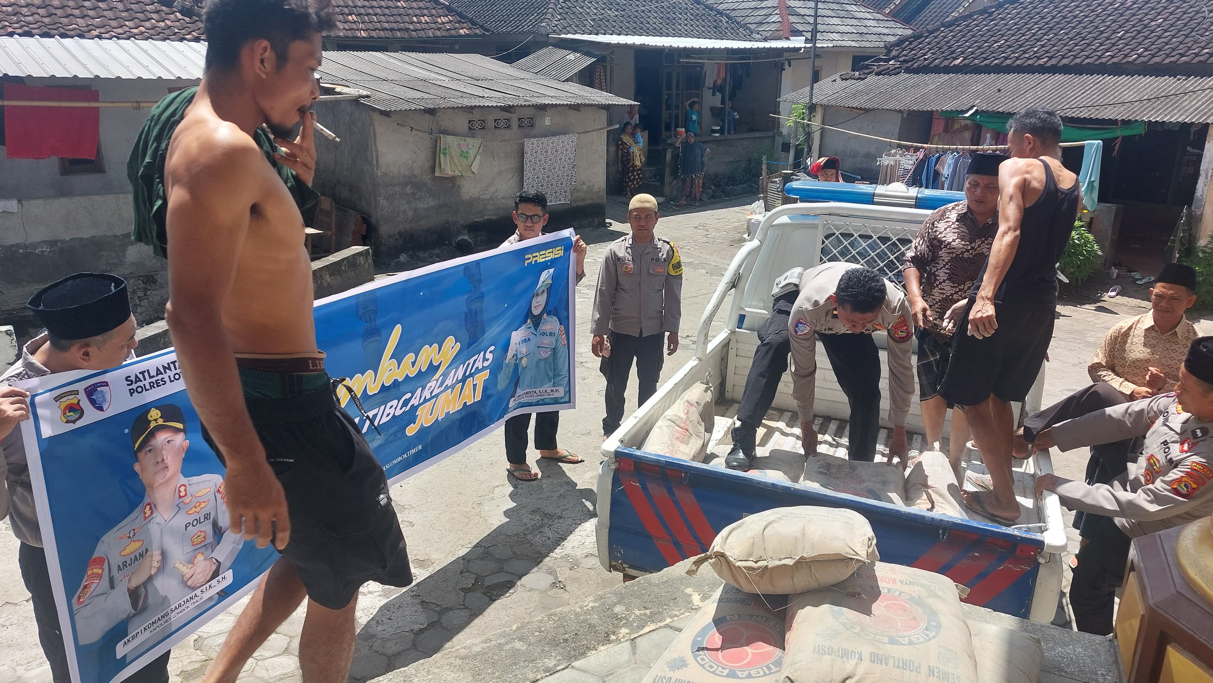 Tidak hanya memberikan edukasi, Satlantas Polres Lombok Timur juga menunjukkan kepedulian sosial dengan menyalurkan bantuan berupa sepuluh sak semen untuk membantu pembangunan Masjid Jami Montong Dao yang masih dalam tahap pembangunan. Bantuan ini disambut baik oleh takmir masjid dan warga sekitar sebagai bentuk sinergi antara kepolisian dan masyarakat dalam membangun lingkungan yang aman dan religius.