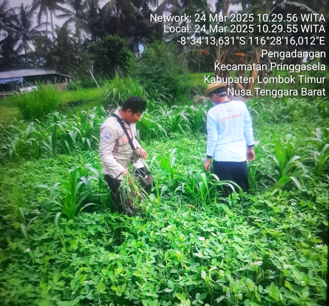 Selain pembersihan, ia juga melakukan pengecekan terhadap kondisi tanaman kacang dan jagung. Pengecekan ini dilakukan untuk memastikan bahwa tanaman dalam kondisi sehat dan berkembang dengan baik. Dengan melakukan pemantauan secara langsung, Bhabinkamtibmas dapat memberikan arahan mengenai cara merawat tanaman agar hasil yang diperoleh lebih maksimal dan dapat memenuhi kebutuhan gizi masyarakat.